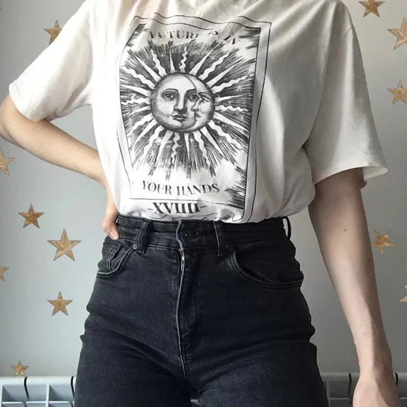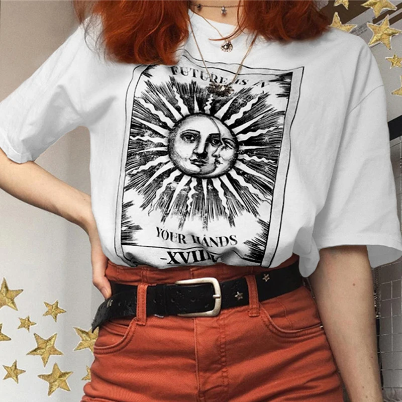Женская футболка в стиле Харадзюку, винтажная веганская футболка с ...
