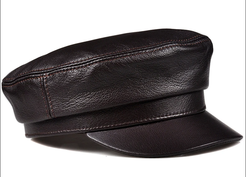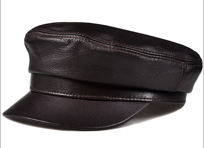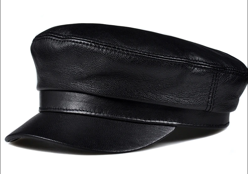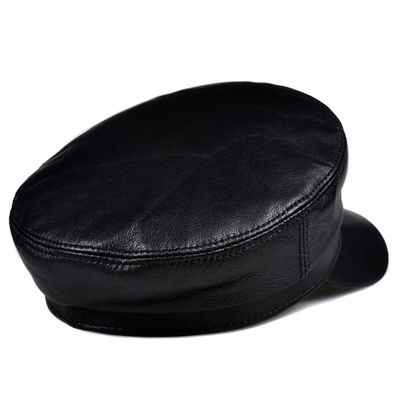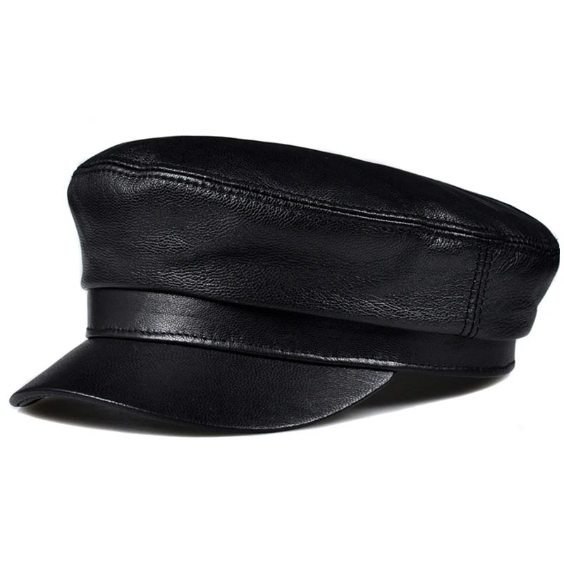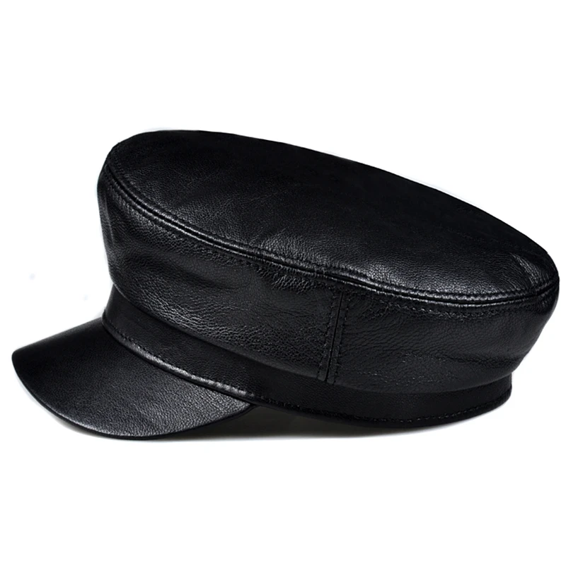 Мужская кепка из натуральной кожи, плоская кепка из натуральной кожи, Мужская армейская военная шапка, модная брендовая Кепка из овечьей кожи, шапки для пожилых мужчин