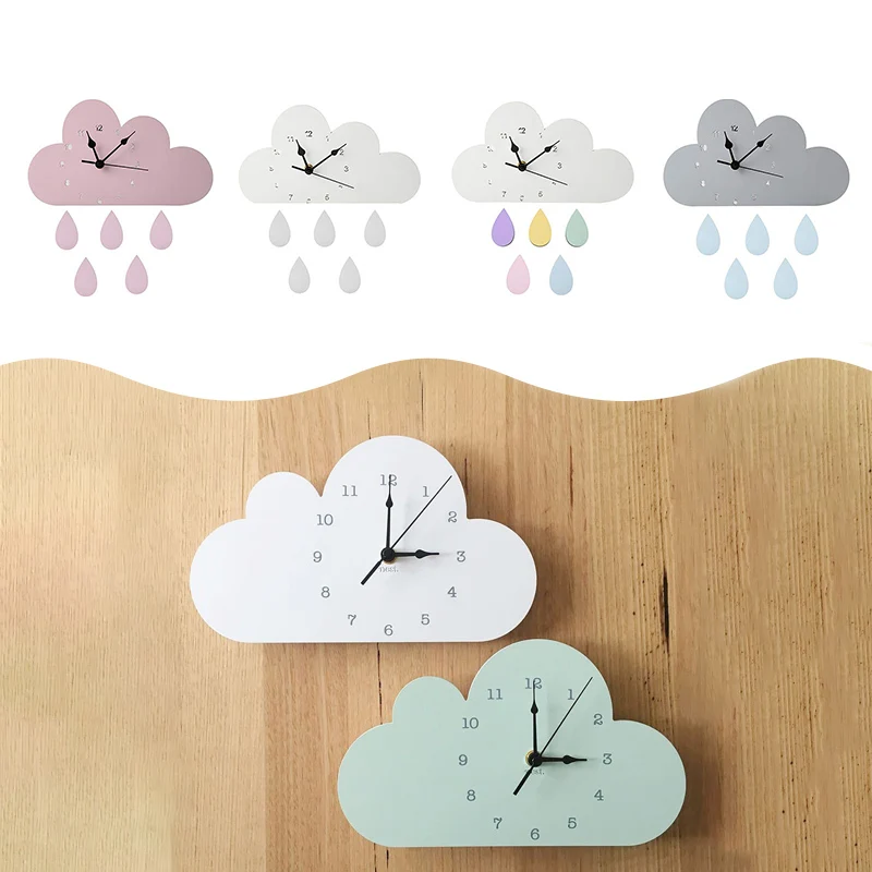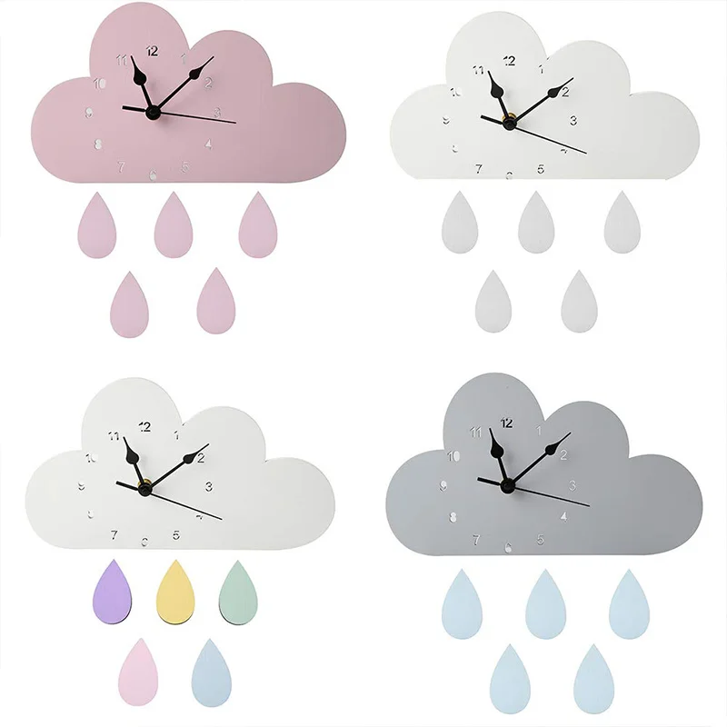 Милые настенные часы в форме облаков, с каплями дождя, украшения для детской комнаты, пол, нейтральные часы, детские фигурки, подарок 28*16 см