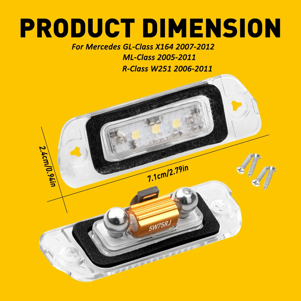 Лампа Canbus светодиодное Освещение номерного знака белая, 6000K, для Mercedes Benz W164 X164 W251 ML GL R Class