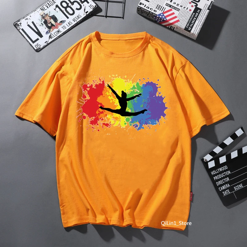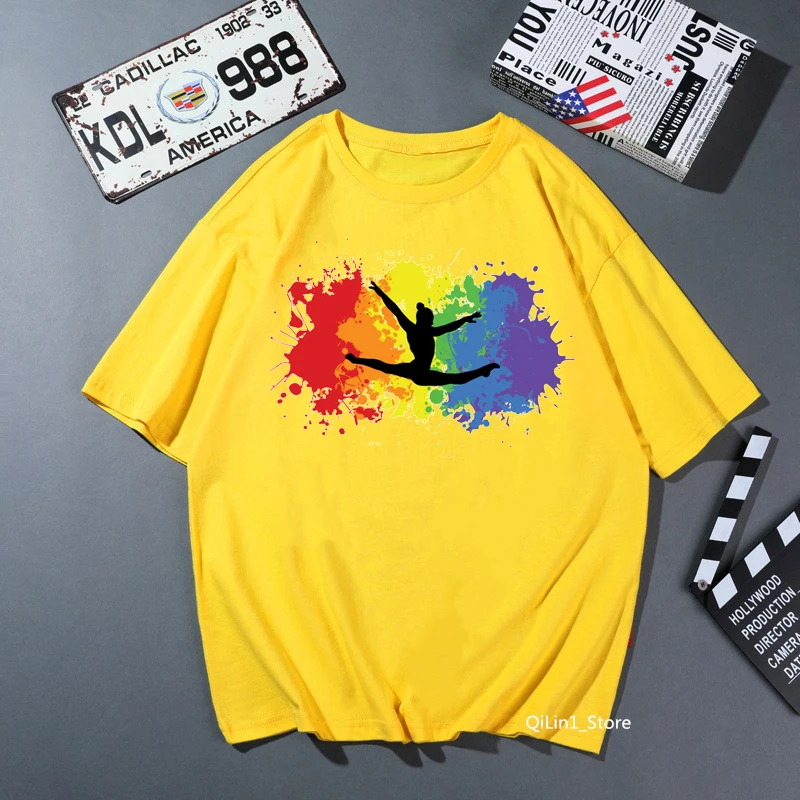 Футболка женская Радужная с принтом гимнастики, однотонная Милая одежда в стиле Харадзюку, топ с брызгами, акварель