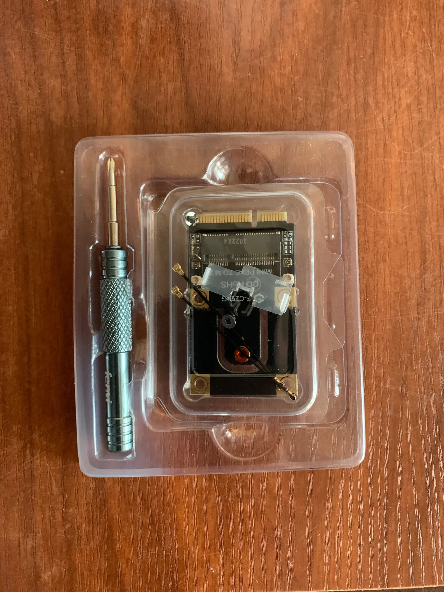 Классный переходник! Мне нужен был WiFi адаптер в старый miniPC. Покупать древнюю модель не хотелось, а через этот переходник смог поставить m.2 Intel 8265. Адаптер прекрасно работает в AC диапазоне. Fenvi как всегда не подводит, да ещё и отвёртку положил! Спасибо продавцу!