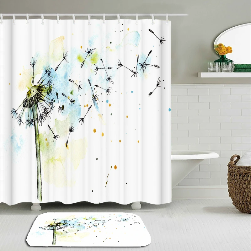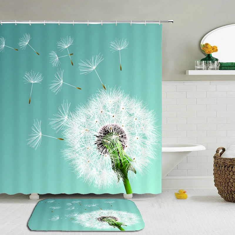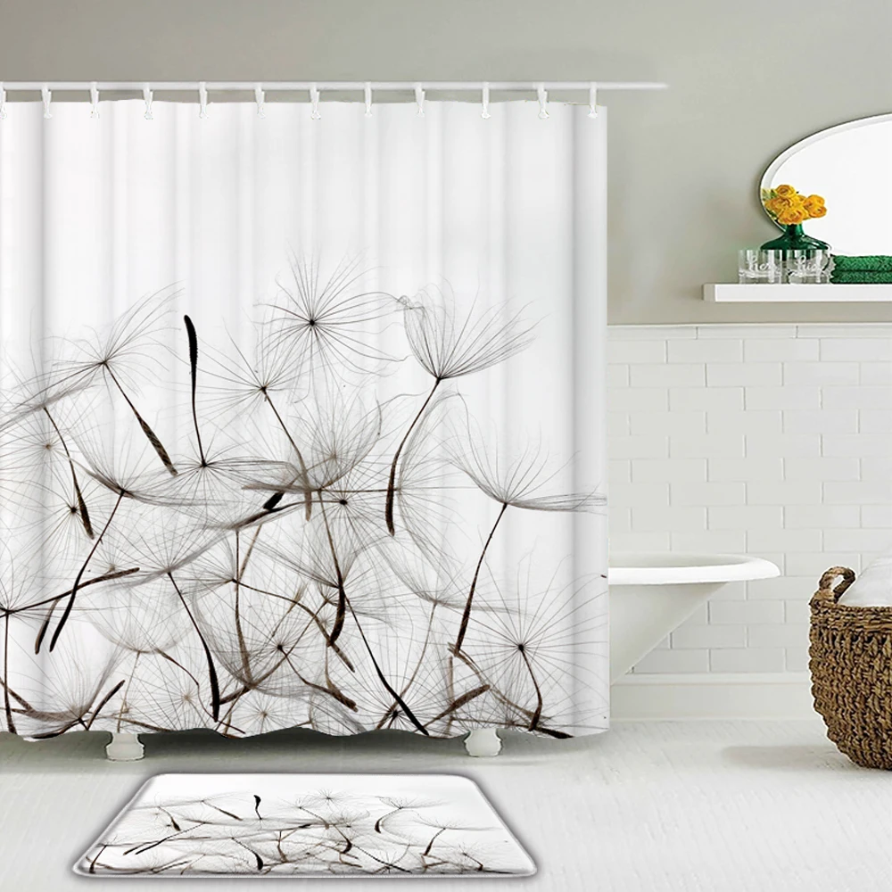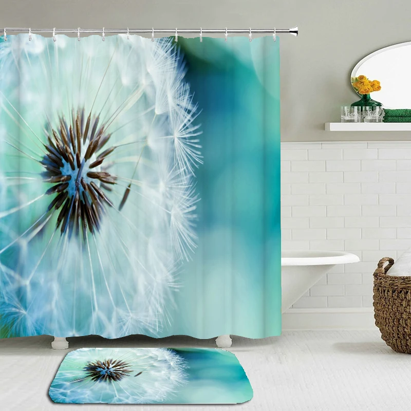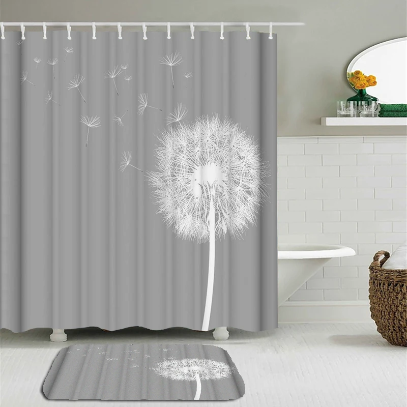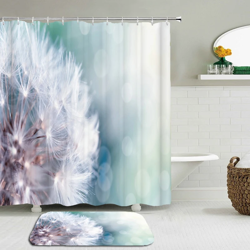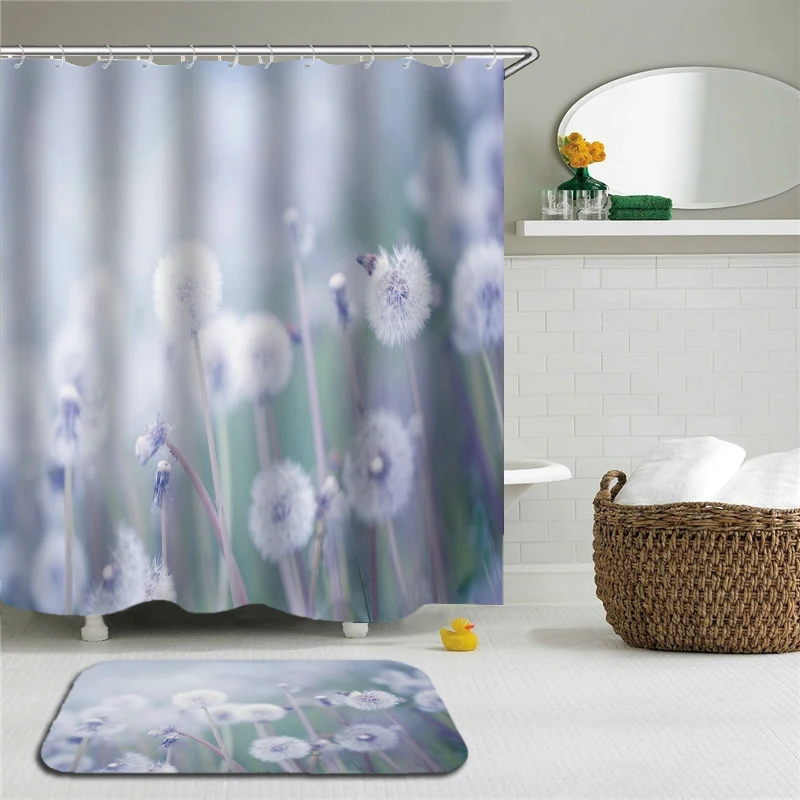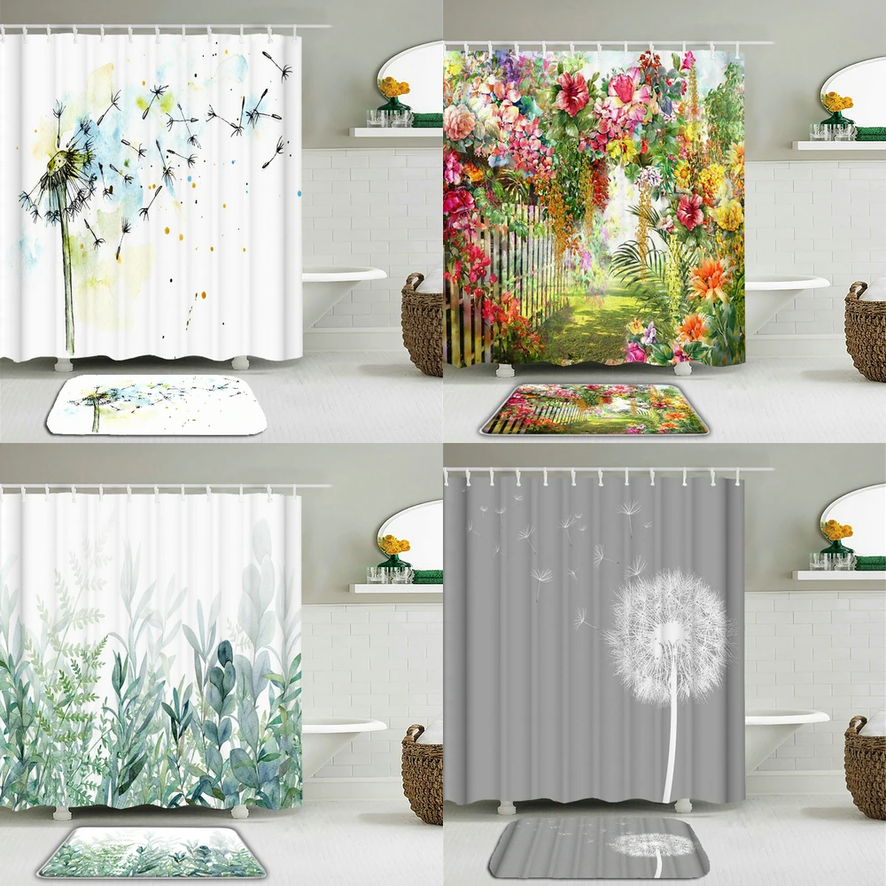 2 шт./компл. Одуванчик цветы растение оставить печать Душ Занавес Набор Водонепроницаемый Ванна занавес s нескользящий коврик туалет ванная комната пол коврик