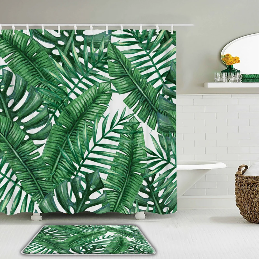 Водонепроницаемая занавеска для душа, 3D Тропическое растение, паль...