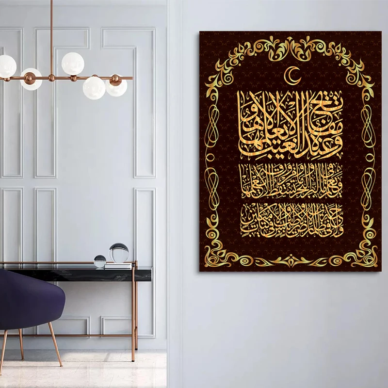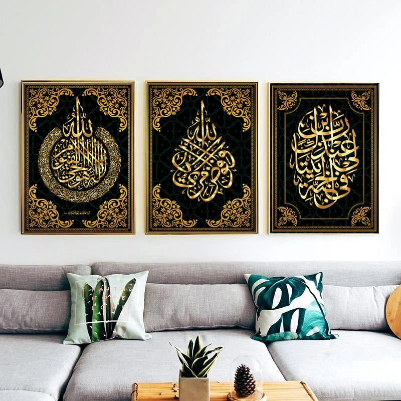 Мусульманская арабская каллиграфия, настенный плакат, черный, золотой, мусульманский Коран, холст, картина Рамадан, украшение для дома icon star icon star icon star icon star icon star