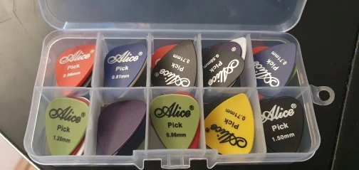 Медиаторы хорошие, описание в точности соответствует товару и продавец отправил товар достаточно быстро, и доставка в течение 2-3 недель, что гораздо быстрее, чем заявлено, и коробка красивая и количество в точности с заявленным, и не скользят в руке, но не может не быть ложки дегтя в такой куче меда - ну до того стачиваются быстро, что просто кошмар: медиатор средней толщины 0,7 мм за неделю - полторы игры по вечерам до состояния невозможно подровнять от слова совсем. Но, правда, их дофига, хватит надолго.