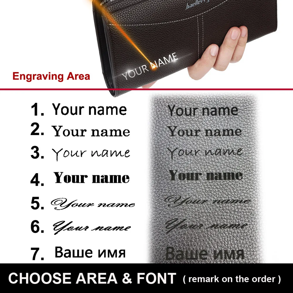 Мужские кошельки с гравировкой имени, Мужской Длинный кошелек на молнии, мужские кошельки-клатчи, деловой вместительный брендовый мужской кошелек высокого качества, 2020