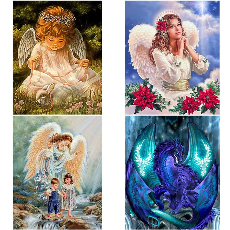 Алмазная 5D картина сделай сам с ангелом, мультяшная Алмазная вышивка, вышивка крестиком, полная круглая мозаика, стразы, настенное искусство, домашний декор