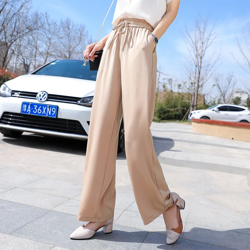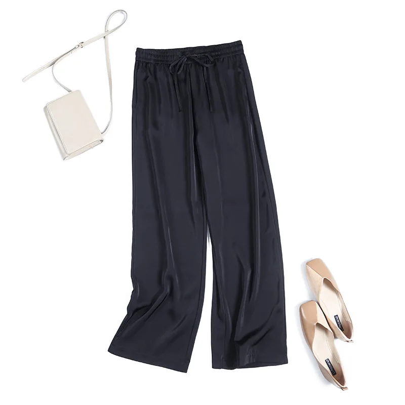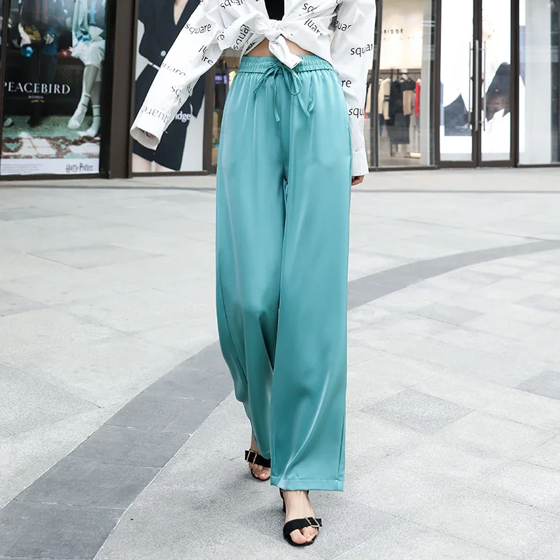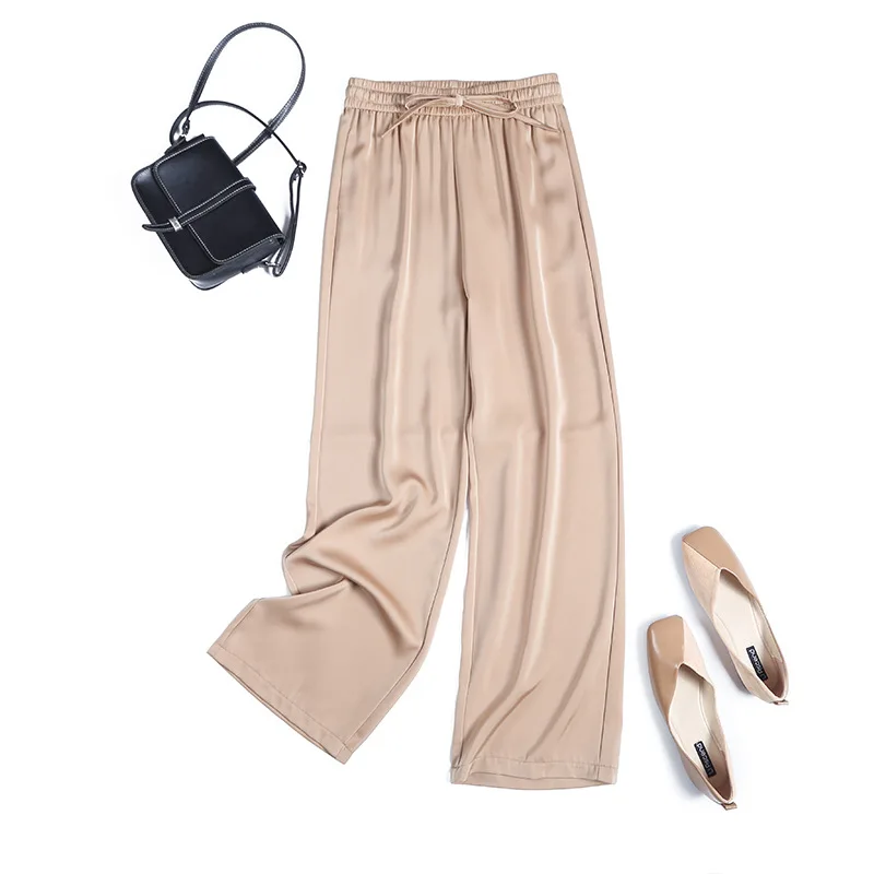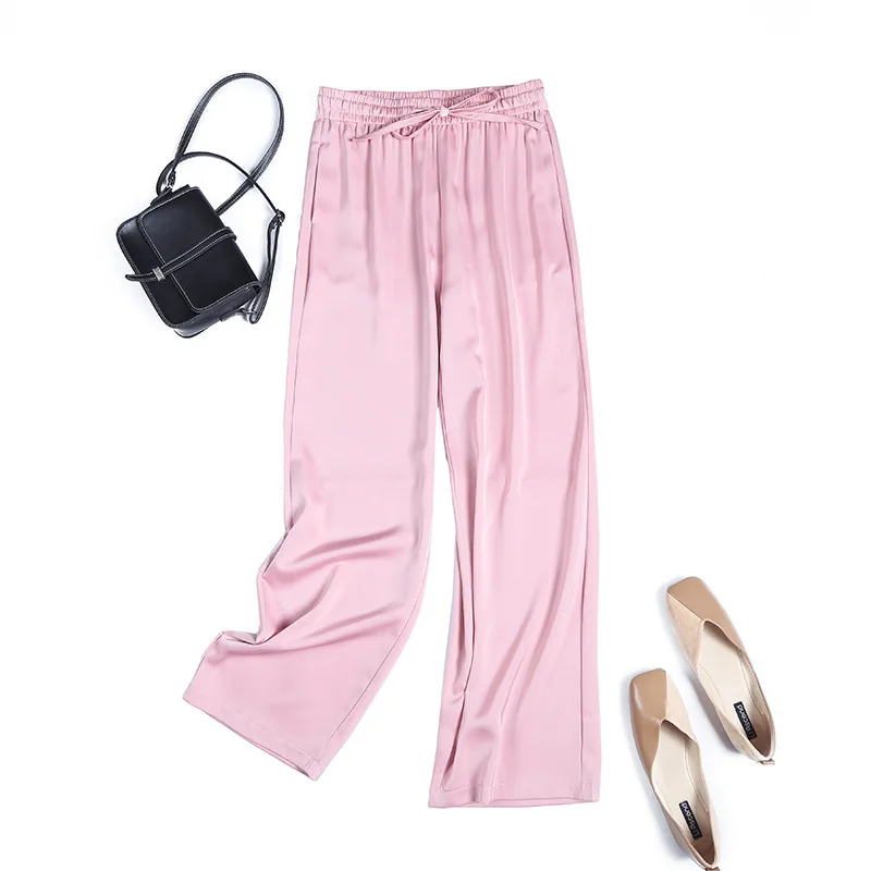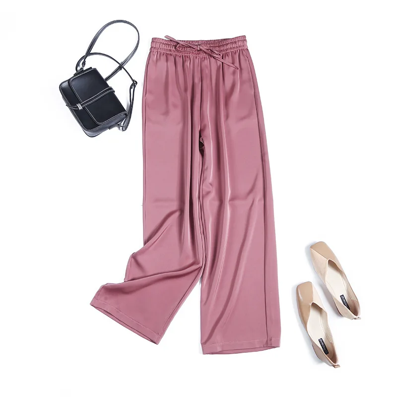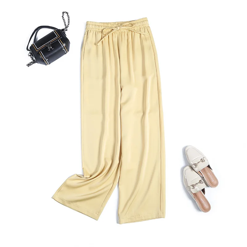 Брюки женские шелковые, летние, с широкими штанинами, из сатина, с драпировкой, GD328