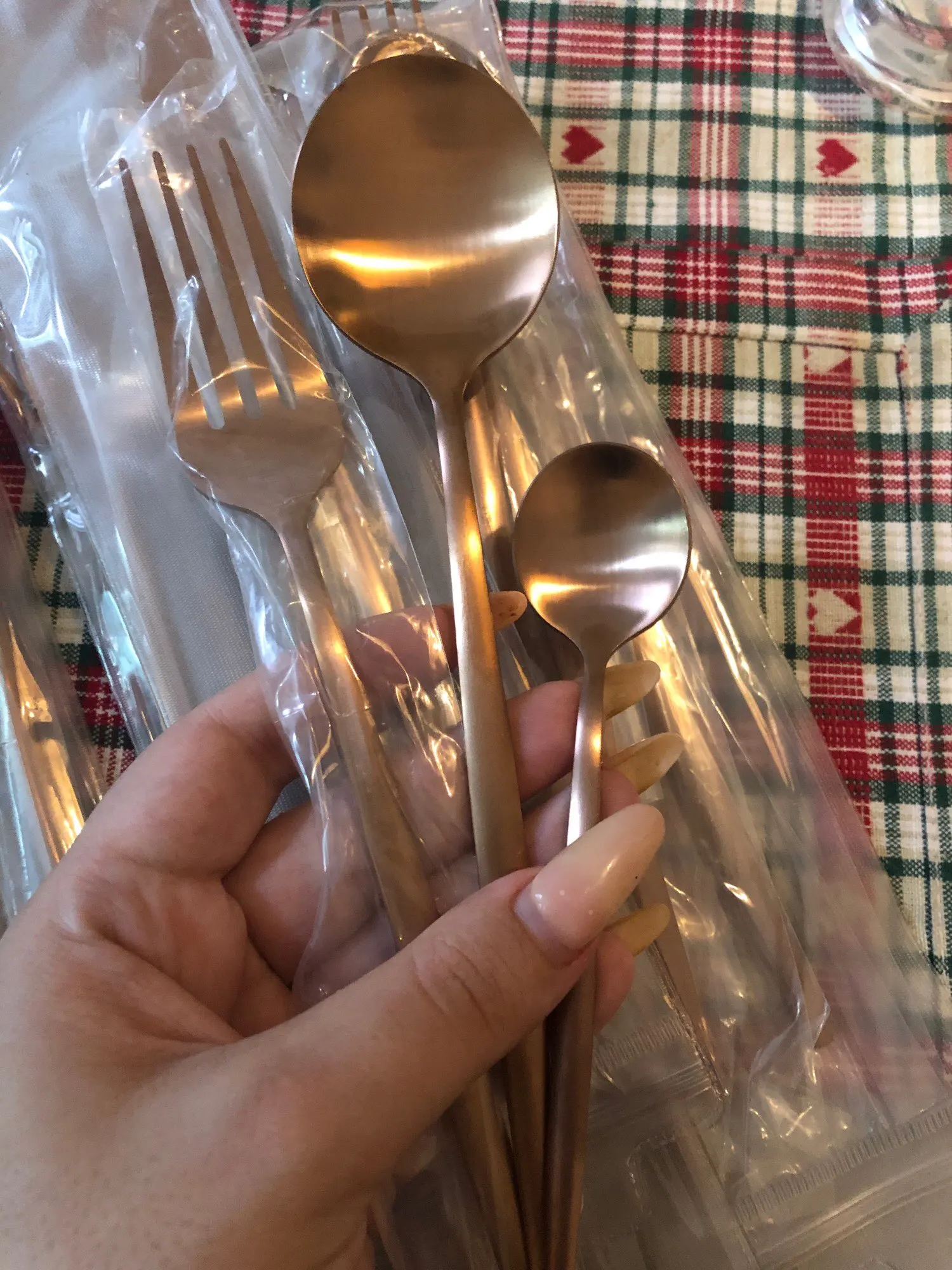 Приборы очень красивые! Все отлично упаковано, каждый в отдельном мешочке! Надеюсь, качество будет хорошим!