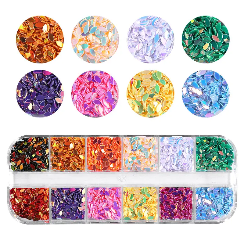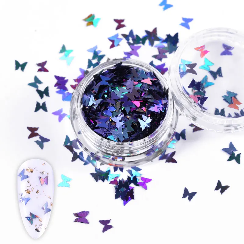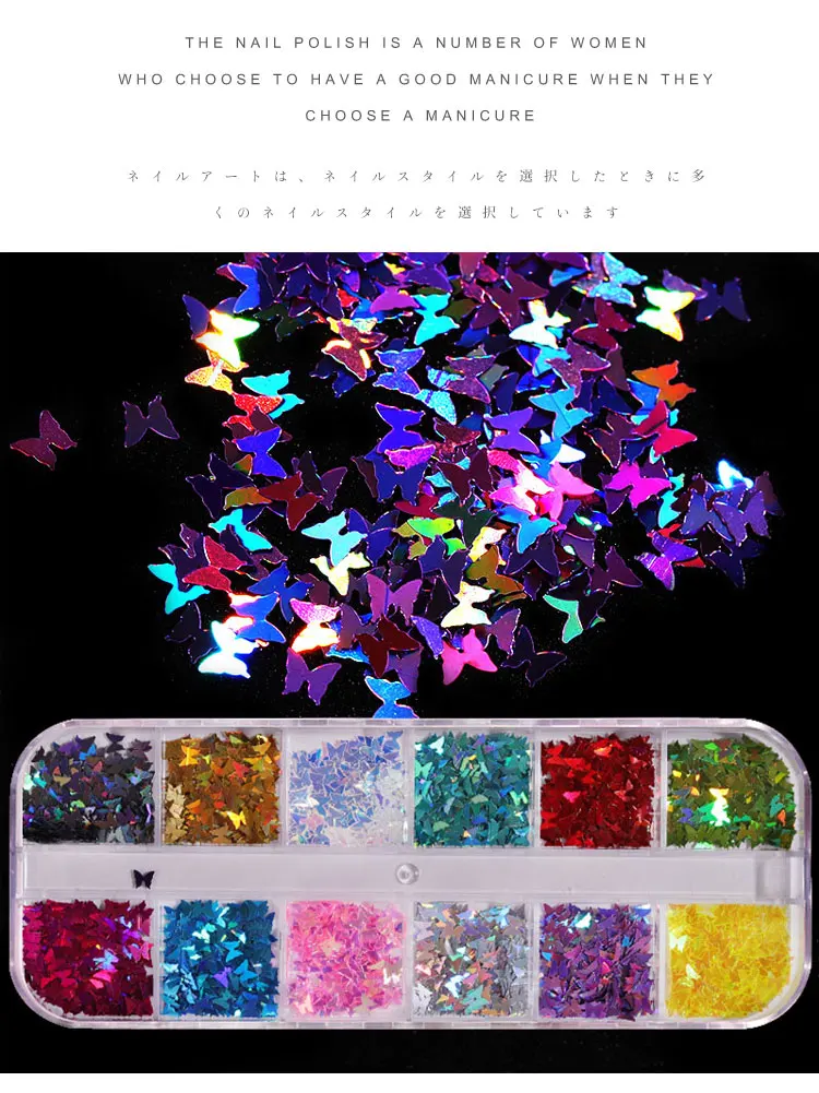 Голографическая бабочка с блестками для дизайна ногтей, 12 сеток, блестящий хвост русалки, набор блестящих кленовых листьев, аксессуары для маникюра