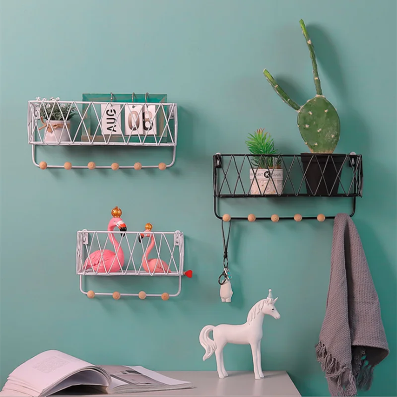 Nordic творческих железные настенные держатели Кухня полка для дома украшения стены стойки вешалки для ключей, крючки, станок и стеллаж для хранения рамка Органайзер