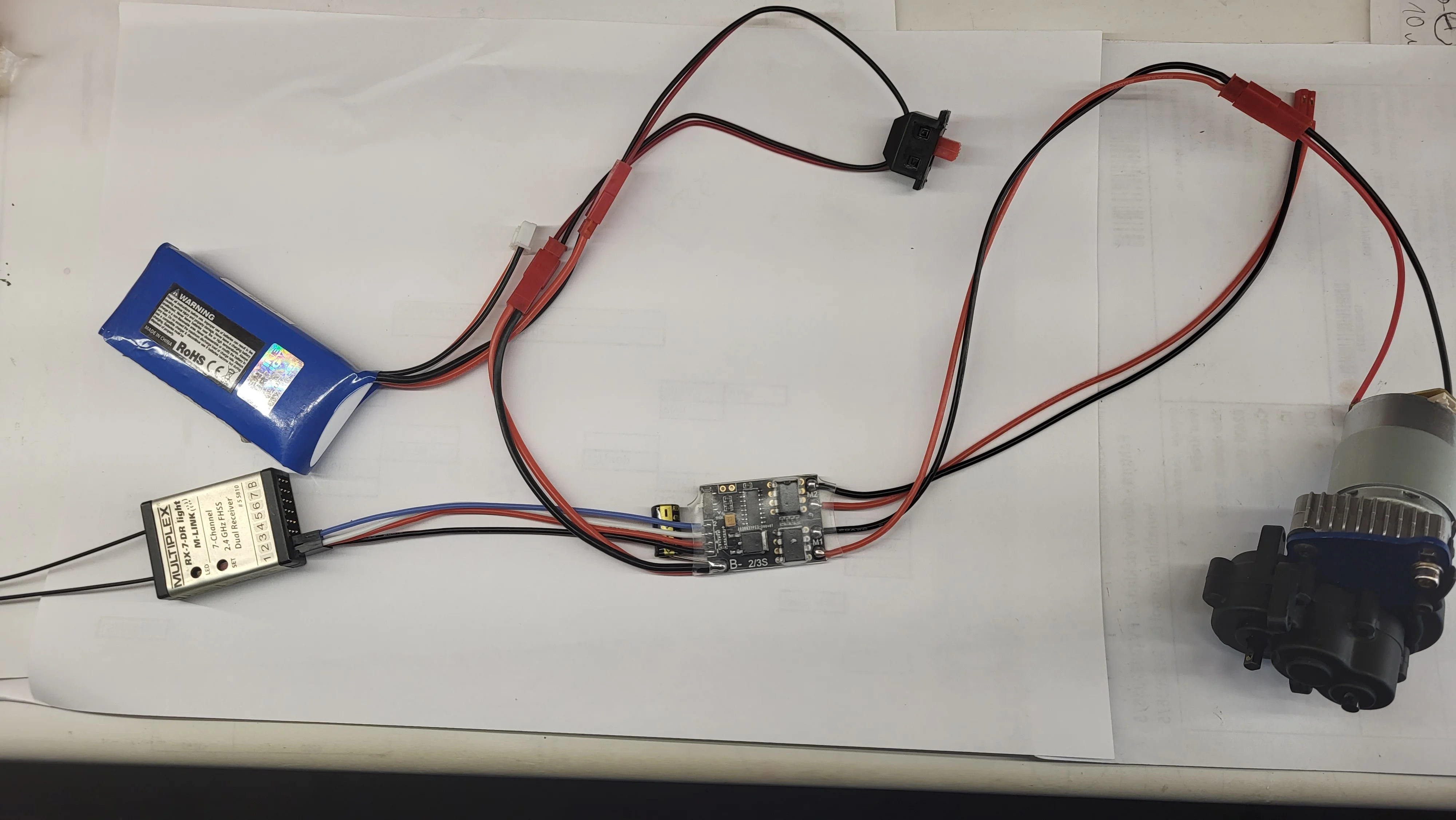У этого ESC есть три режима, выберите его перед включением питания (тумблер)Смешанный режим управления (Дифференциальная скорость), переключая переключатель внутрь