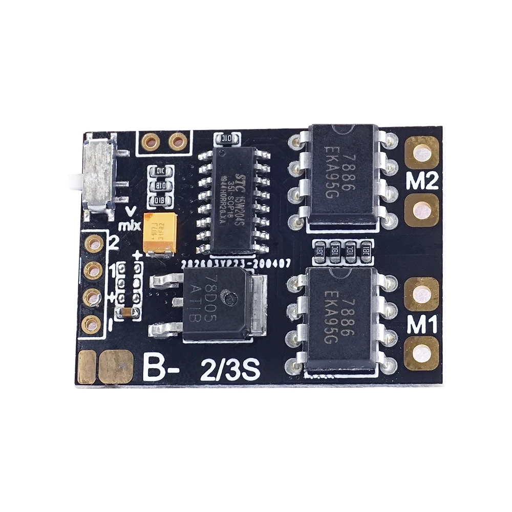 Размер: 24x45 мм (размер платы: 24*33 мм)Номинальное напряжение: 6-14 в (безопасно для литиевой батареи 2 / 3S)Выходной ток: Одноканальный 5 А (одноканальный, предыдущий 13 а)Управляющий сигнал: сигнал PPMОписание функции:Есть подсказка включения