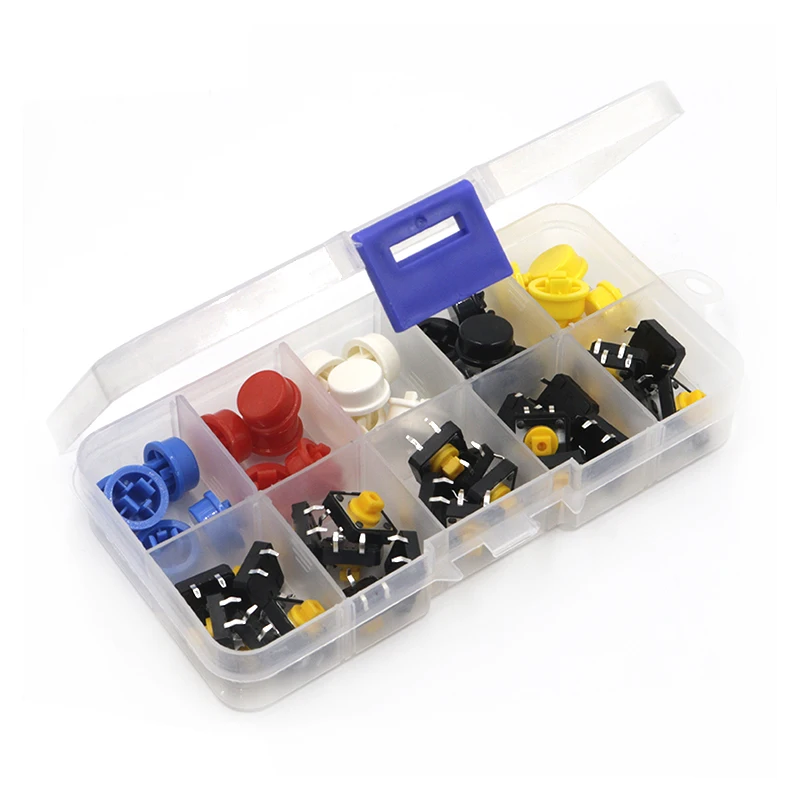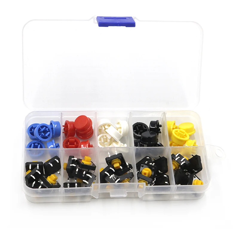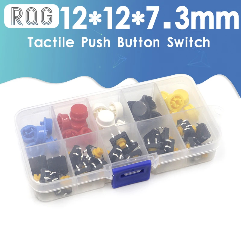 25 шт. Тактильный кнопочный переключатель мгновенный 12*12*7,3 мини-выключатель Кнопка + 25 шт. тактовых колпачков (5 цветов)