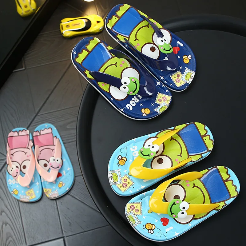 Детские тапочки, Новинка лета 2020, симпатичные Тапочки лягушки для мальчиков и девочек, детские Нескользящие шлепанцы для ванной комнаты, детская пляжная обувь