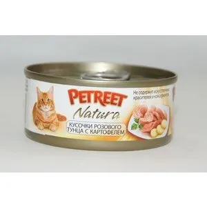 Полноценный сбалансированный корм для взрослых кошек всех пород. Консервы Petreet в виде нежного паштета изготовлены исключительно из натуральных продуктов и не оставят равнодушным ни одного питомца. В их состав входит до 64% основного компонента - мяса тунца, а это значит, что продукт богат протеином - источником бодрости вашей кошки. Для поддержания здоровья внутренних органов и зрения в состав консервов входит аргинин, таурин и незаменимые жирные кислоты Омега 3 и Омега 6. Идеально подходит для кастрированных и стерилизованных кошек. Основу консервов Petreet "Natura" с куриной грудкой и креветками, составляет парное белое мясо грудки цыпленка с добавлением креветок. При умеренной калорийности в корме содержится высокий уровень белка (19%), витаминов и других незаменимых для кошки веществ.