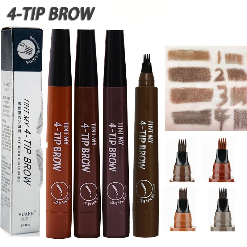 Карандаш для бровей водостойкий макияж для глаз 4 вилки Портативный Красота инструмент для Для женщин леди тонкий эскиз жидкость для бровей, ручка для бровей для макияжа