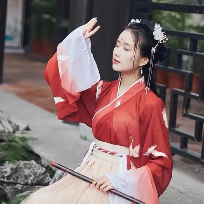 Женский праздничный наряд Hanfu для женщин, винтажное Ретро сказочное китайское традиционное платье с вышивкой