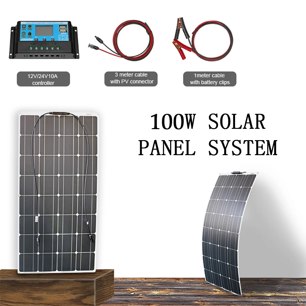 Набор солнечных панелей 100 Вт, 12 В, гибкое зарядное устройство, монокристаллическая панель, солнечная система для дома, Автодома, лодки