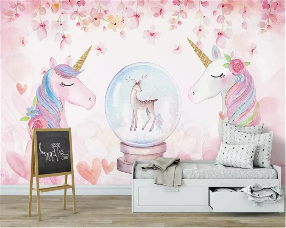 Пользовательские 3D обои акварель Единорог искусство Фреска жизнь спальня прихожая Детская комната фон фотообои behang