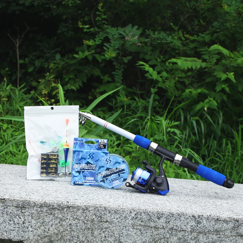 Набор рыболовных удилищ, телескопическая удочка и спиннинговая катушка, крючки для морской и пресной воды