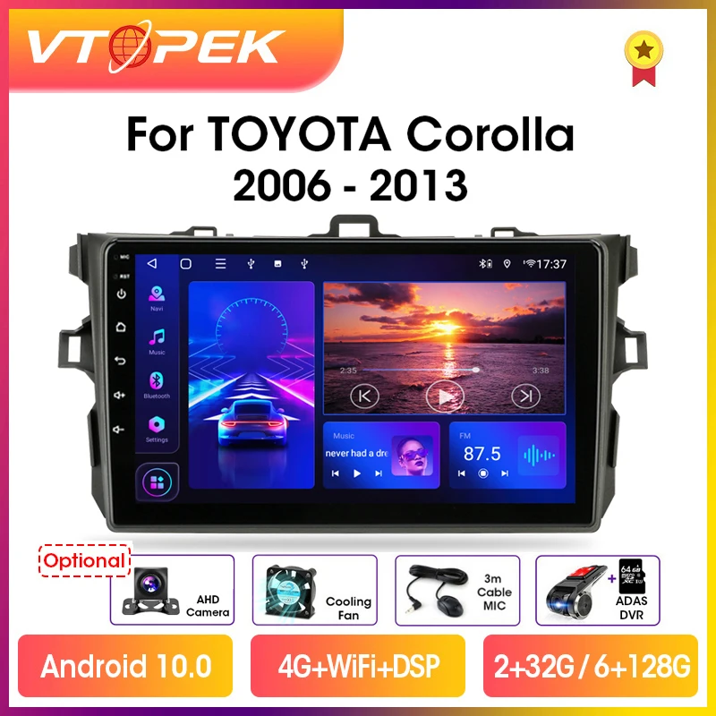 Автомагнитола Vtopek 2DIN, 9 дюймов, 4G + WiFi, Android 10,0, GPS-навигация для Toyota Corolla E140150, 2006-2013