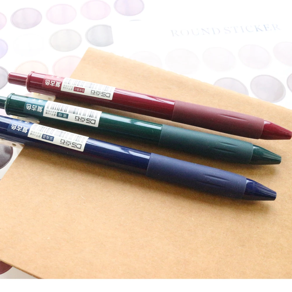 Domikee Классическая цветная школьная Шариковая ручка для школьников винтажные 0,5 мм Офисные цветные чернильные шариковые ручки канцелярские принадлежности 3 шт.