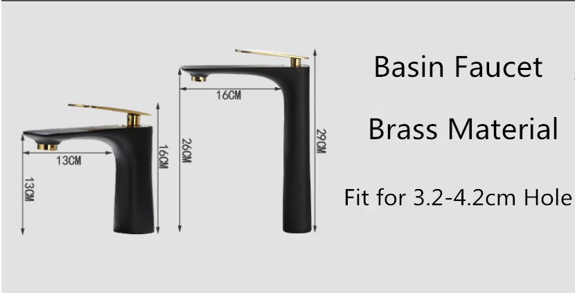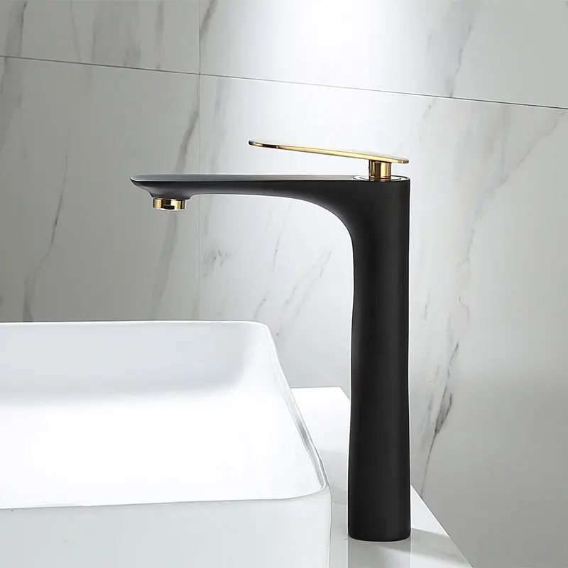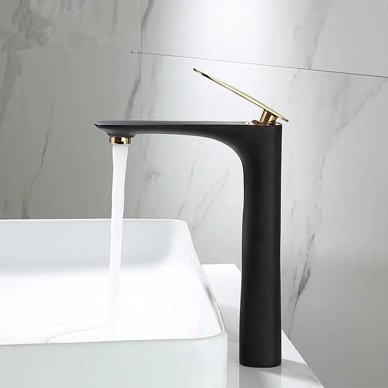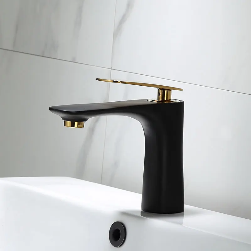 Смеситель для раковины, латунный черный с золотом кран для горячей и холодной воды