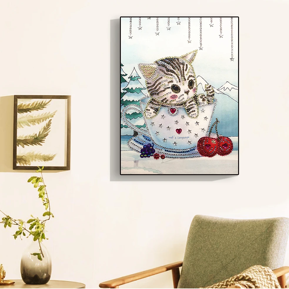 Алмазная живопись специальной формы "сделай сам", 5D, частичная вышивка крестиком, кот, 2020 Алмазная вышивка, новинка, Хрустальный страз картины