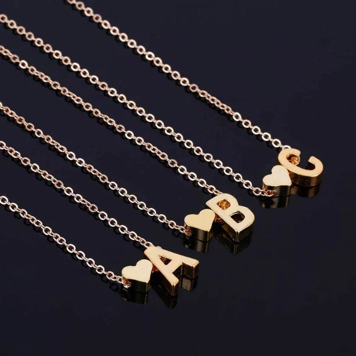 Модное маленькое сердце, оригинальное, индивидуальное, БУКВЕННОЕ имя, колье, ожерелье для женщин, золотой цвет, подвеска, летние ювелирные изделия, аксессуары, подарок