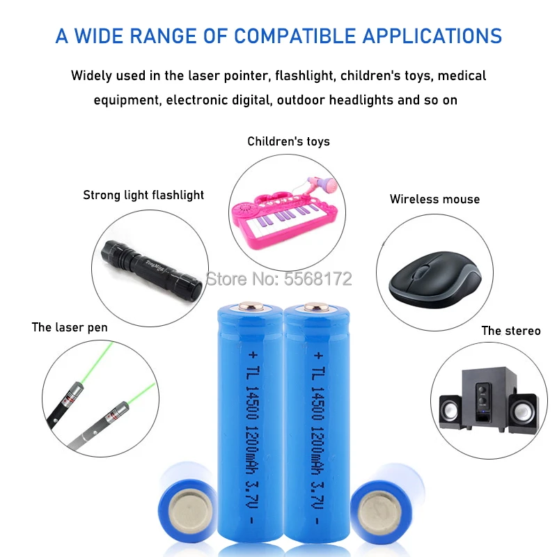 Литий-ионная аккумуляторная батарея 14500 высокой емкости 3,7 в 1200 мАч для светодиодного фонарика