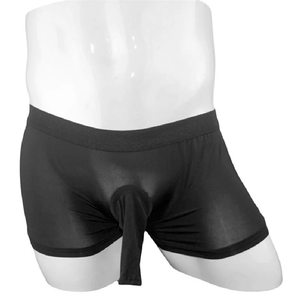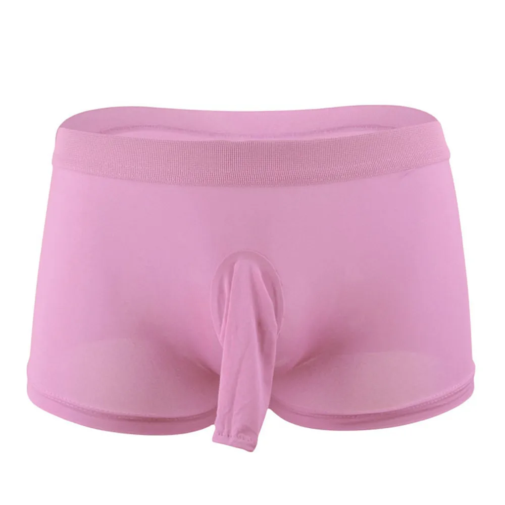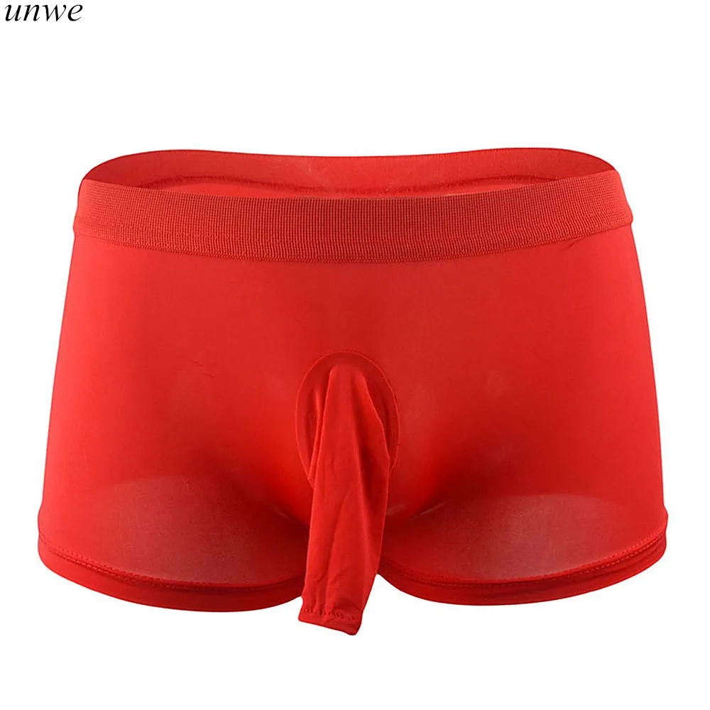 Мужские трусы-боксеры с низкой посадкой, синие полупрозрачные Трусы из вискозы, сексуальное нижнее белье для мужчин, гей-трусы