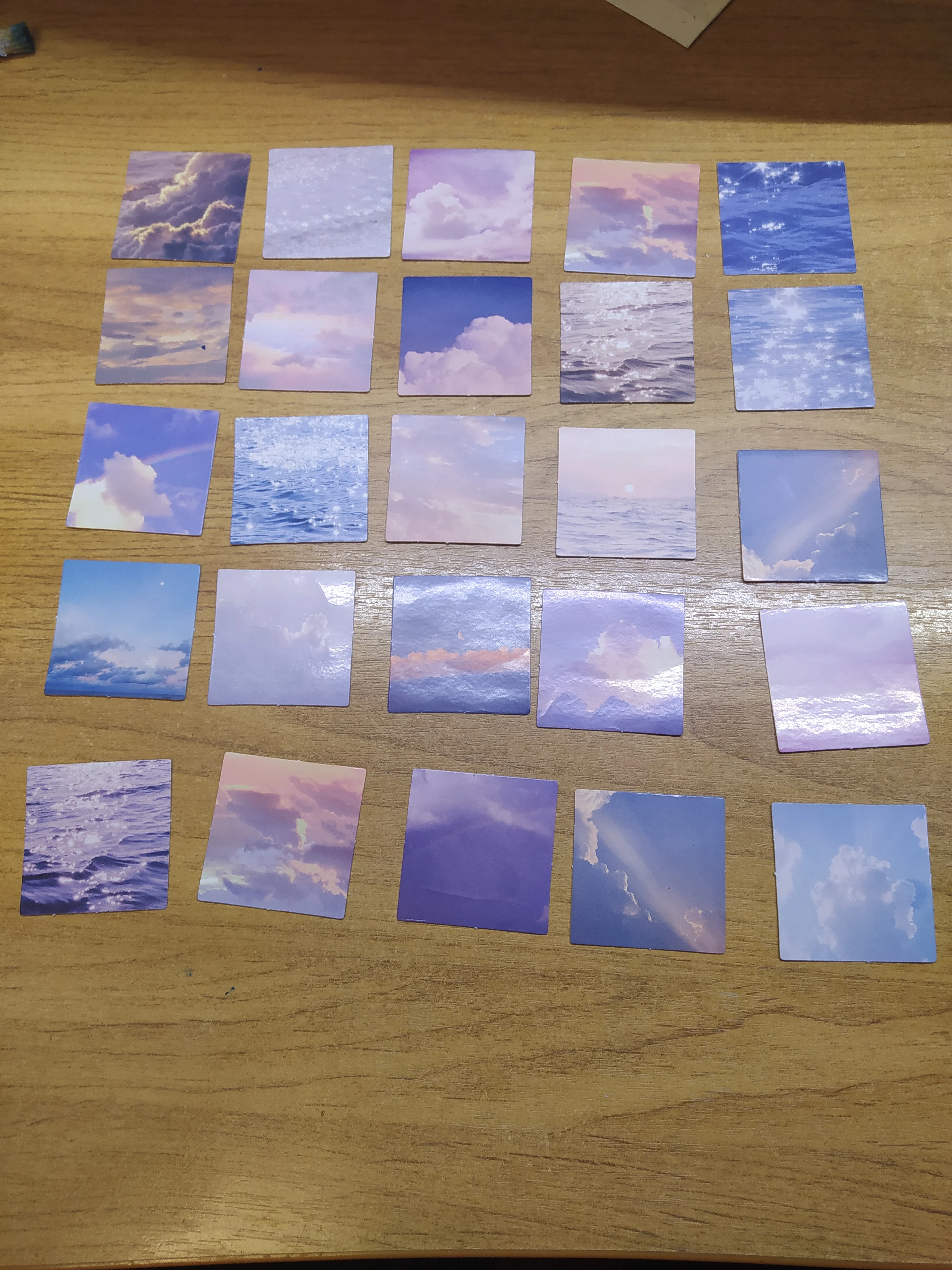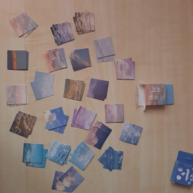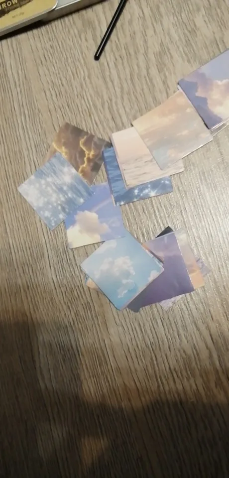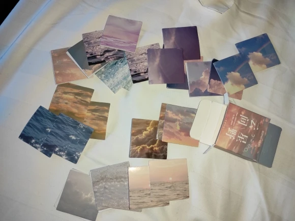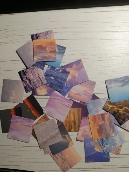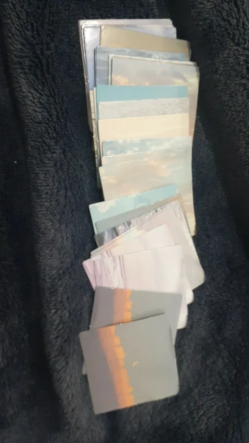 картонки красивые, каждого вида по две штуки, но это хорошо. правда, есть какие-то полосы на картоне, отпечатки, будто на них лежало что-то долго. но в целом довольна