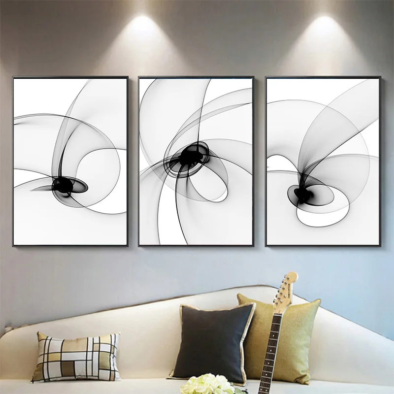 Настенная Картина на холсте в скандинавском стиле, настенные плакаты черного и белого цвета с абстрактными линиями для гостиной, современный постер для домашнего декора