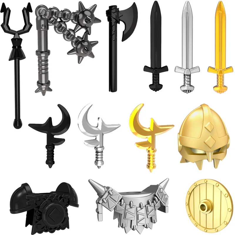 10 шт.лот длинный меч средневековые Викинги лизардман Шлем Броня щит оружие топор MOC строительные блоки кирпичи детские подарки игрушки
