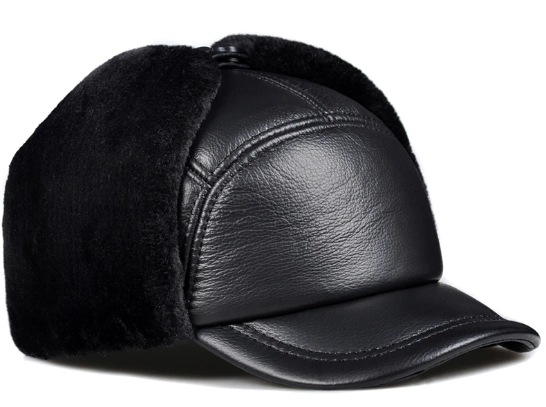 Название продукта:Зимняя шапка ушанка из натуральной коровьей кожи для мужчин и женщин летчик-бомбардировщик шапка-трапеция из искусственного меха снежная шапка с ушками