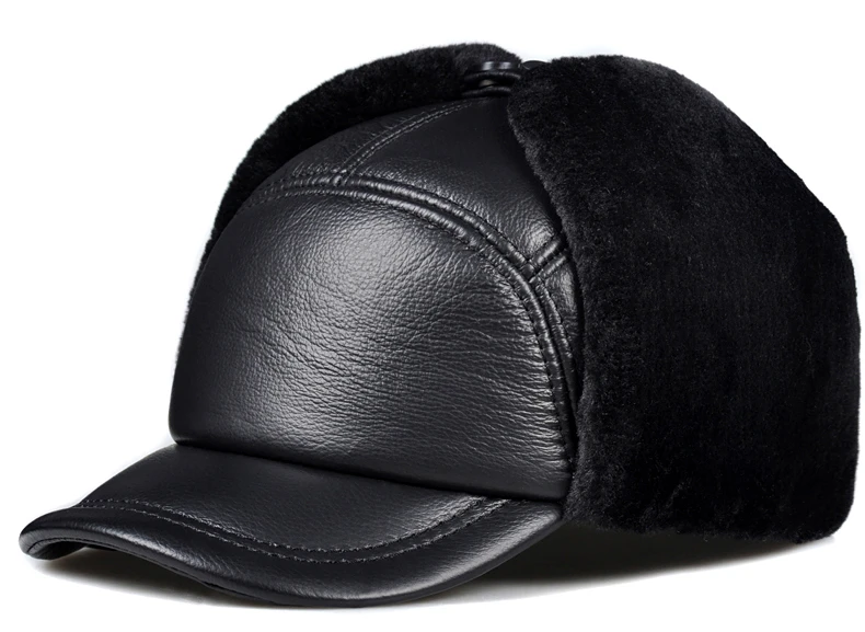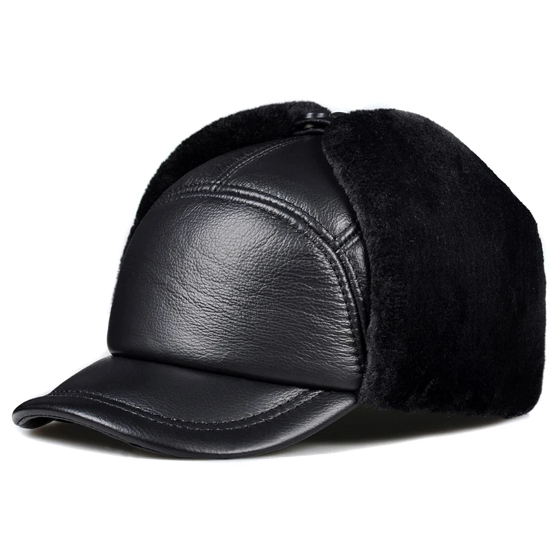 Зимняя ушанка, шапка из натуральной коровьей кожи, мужская и женская шапка-Авиатор, Охотничья Шапка, снежная шапка из искусственного меха с ушами