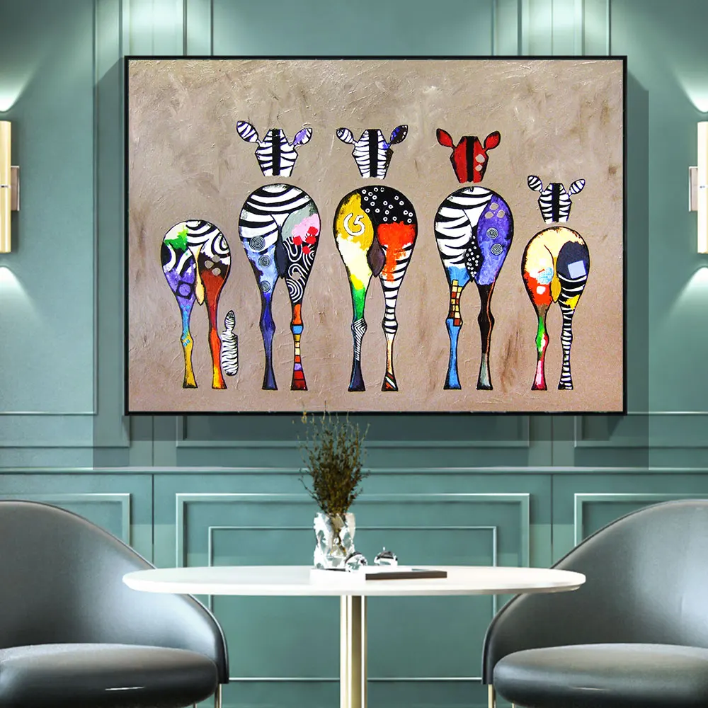 AAHH абстрактная цветная Зебра вид сзади Абстрактная Картина на холсте постеры Настенная картина для гостиной домашний Декор без рамки