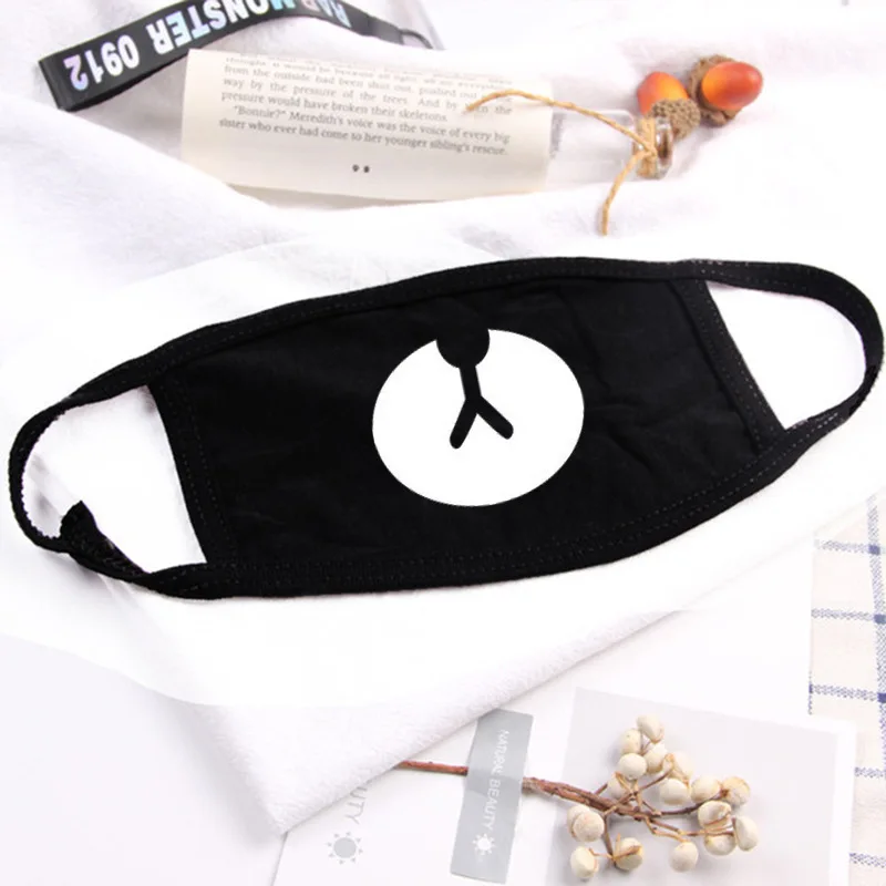 Маска для лица с забавным аниме медведем, многоразовая черная хлопковая Пылезащитная маска для рта, подарок на Хэллоуин, аксессуары для косплея, реквизит для вечеринки