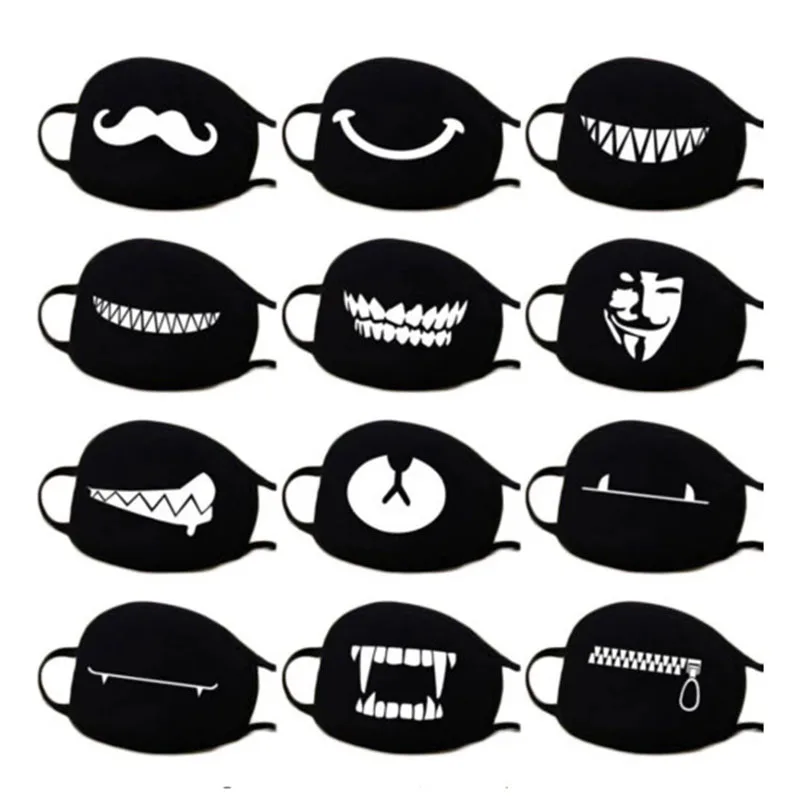 Многоразовая черная хлопковая Пылезащитная маска Аниме забавное выр...