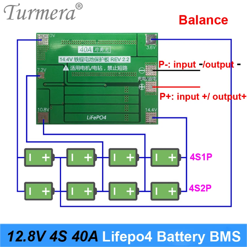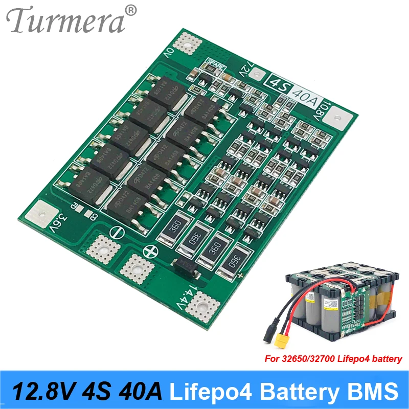 Аккумулятор Turmera 4S, 40A, 12,8 В, 14,4, 32650, 32700, Lifepo4, сбалансированный BMS для электролодки, бесперебойный источник питания, 12 В, автомобильный аккумулятор