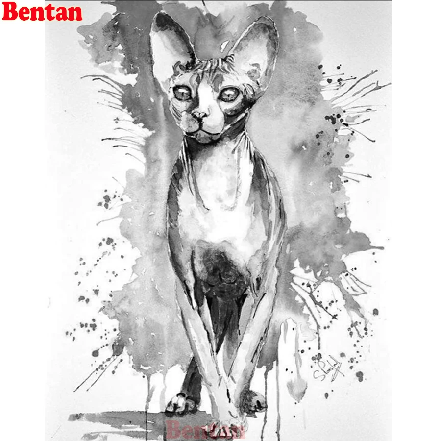 Алмазная живопись черный белый Искусство Сфинкс Кошка Алмазная Вышивка Полный дисплей Алмазная мозаика Набор для вышивки крестиком животные игла из бисера