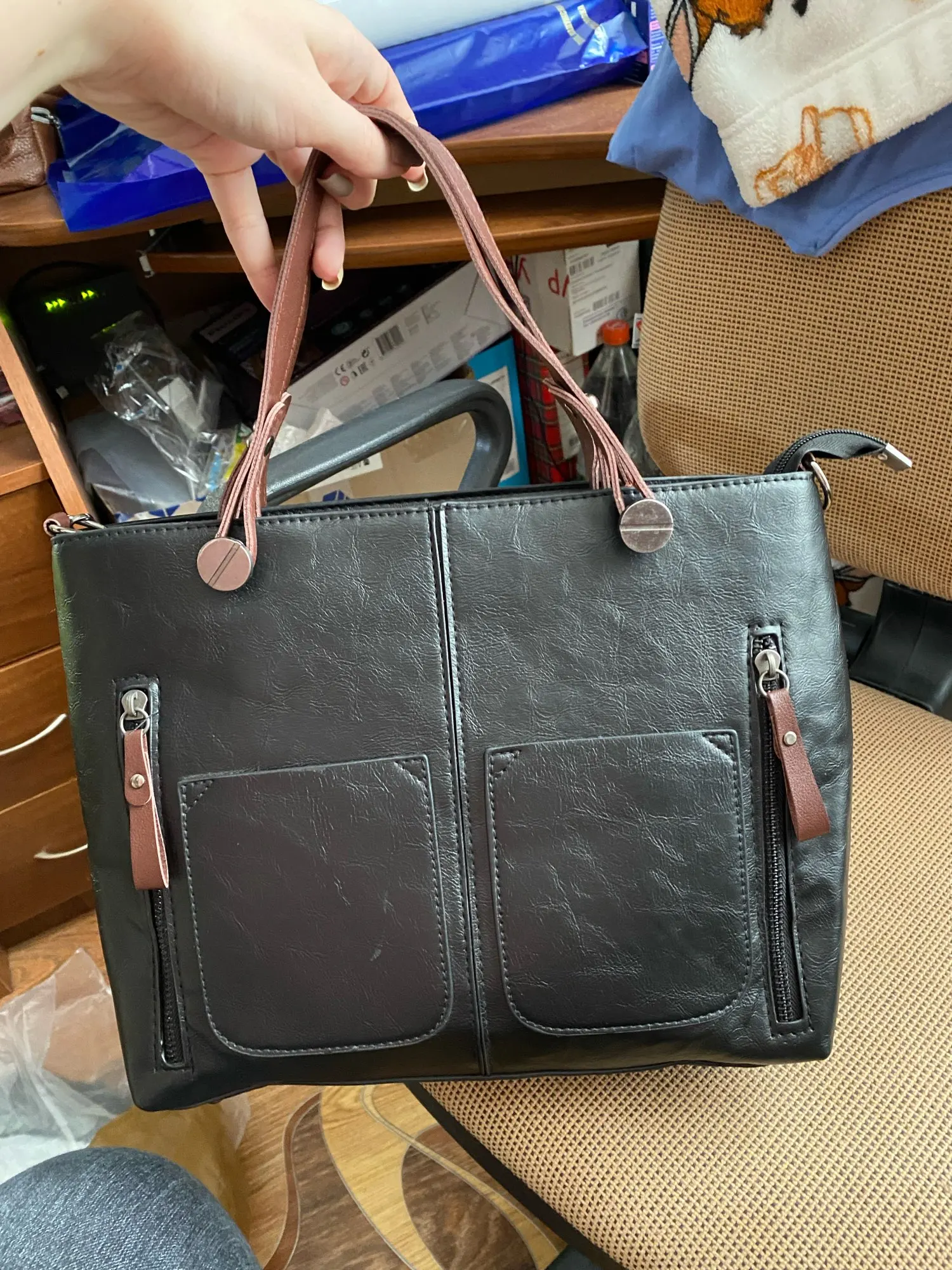 Сама сумочка хорошая по качеству, плотная но ручки очень тоненькие и фурнитура не очень качественная. В ней не было воздушного пакета внутри и она помялась при транспортировке. Шла сумка чуть больше месяца. Упакована была в тканевой и полиэтиленовый пакеты. В принципе, нормально, но я не в восторге.