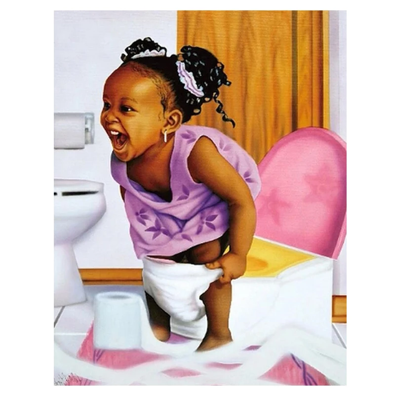 5D алмазная живопись сделай сам, африканская маленькая девочка на унитазе, алмазная вышивка, мозаика, вышивка крестиком, украшение для ванной комнаты, искусство BY165