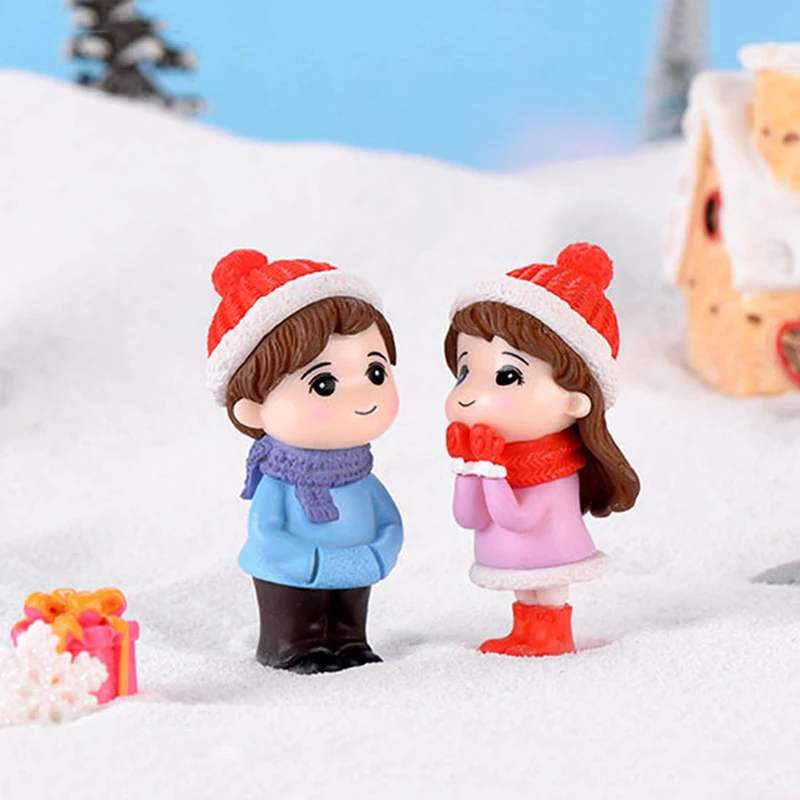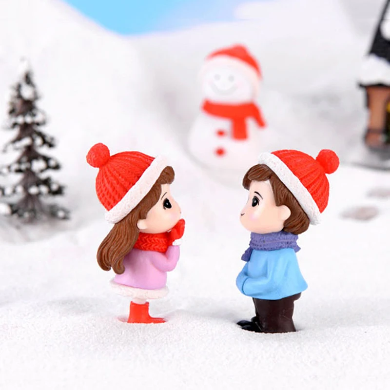 Мини Пара Снеговик статуя из смолы ремесленник сад миниатюрный микро пейзаж украшение дом Рождество пара Снеговик статуя