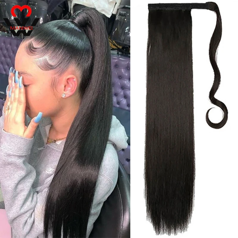 MANWEIWomen длинные прямые волосы на заколках хвост накладные волосы конский хвост шпильки синтетические волосы пони хвост наращивание волос