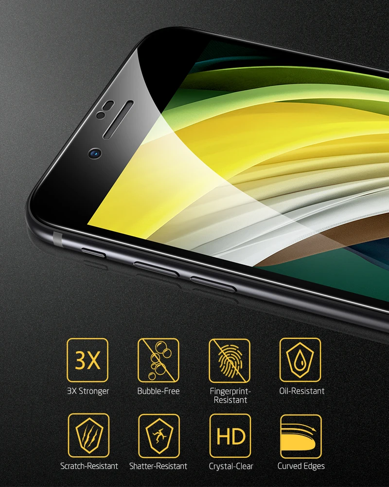 Защитное стекло ESR для iPhone SE 2020, 2 шт., полное покрытие, закаленное стекло для Apple iPhone SE 8, 7, 6s, экранная пленка