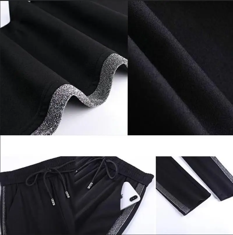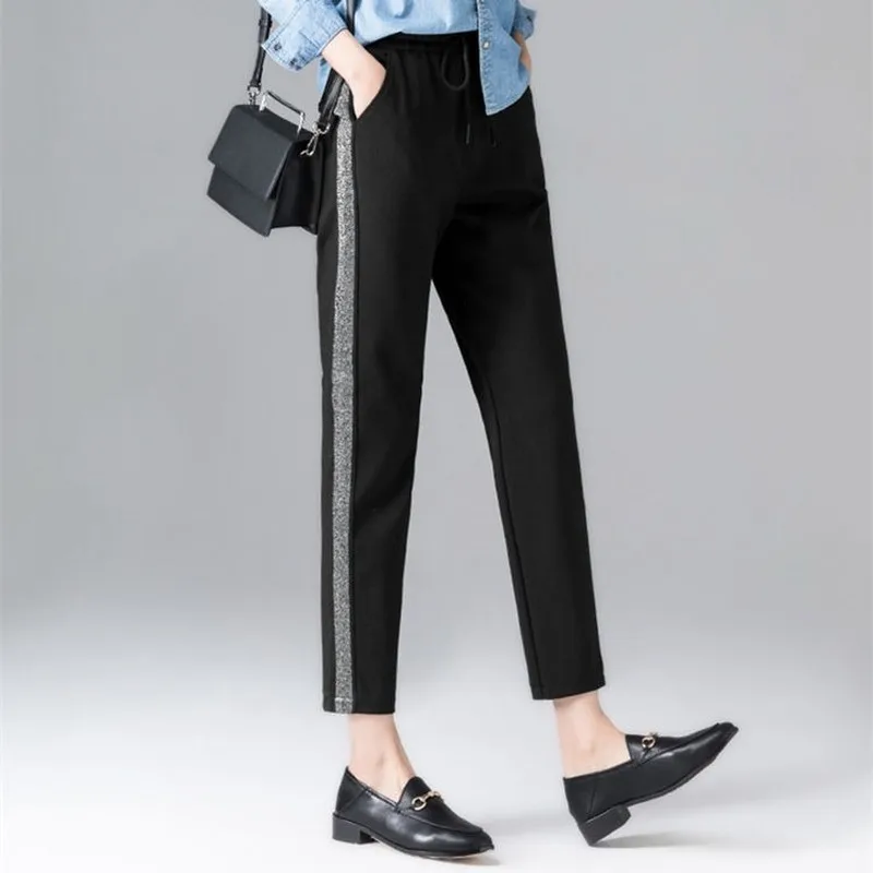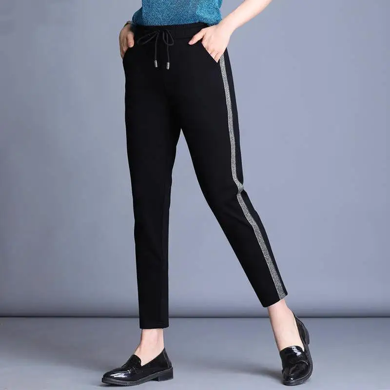 Шаровары женские, черные, на шнурке, со средней талией, элегантные, мягкие, для отдыха, весна-лето, размера плюс