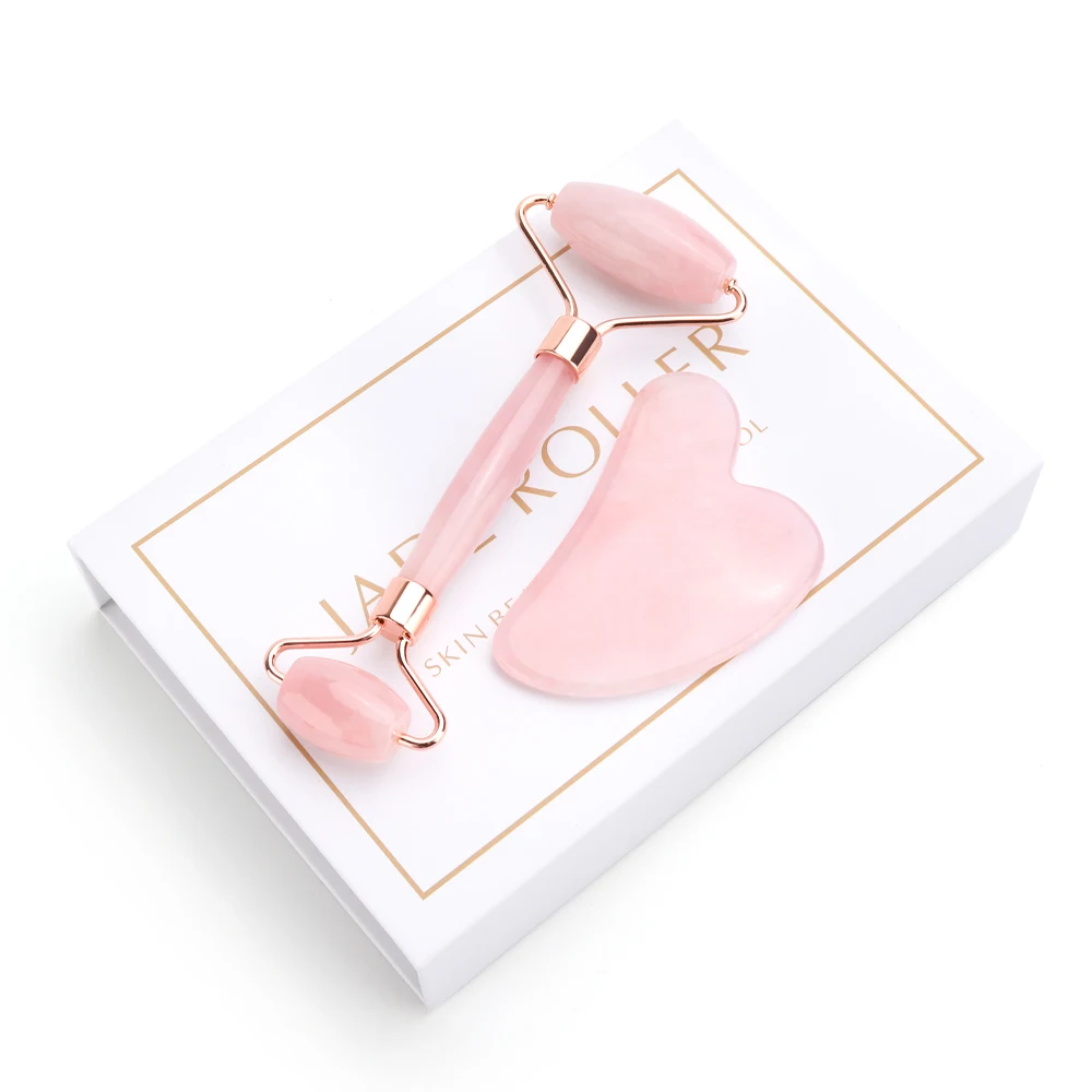 Натуральный розовый кварц Нефритовый валик Gua Sha Set Массажер для...